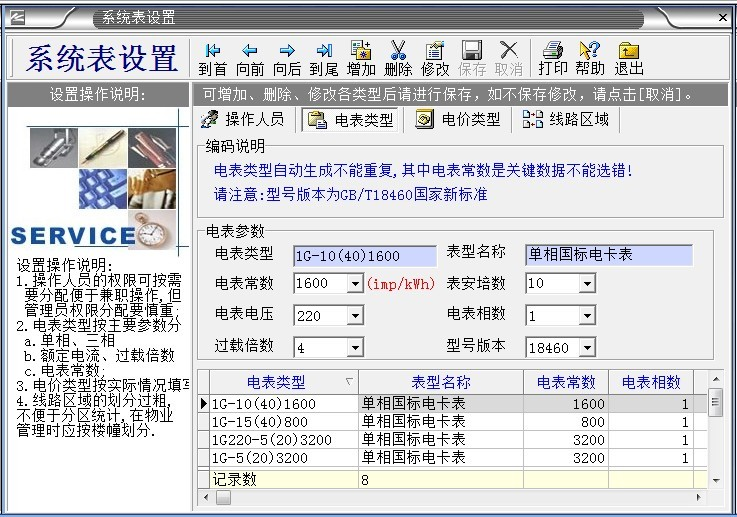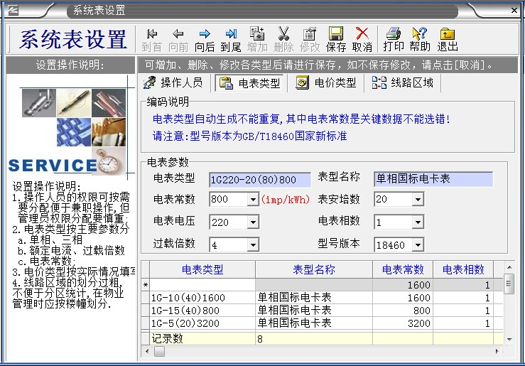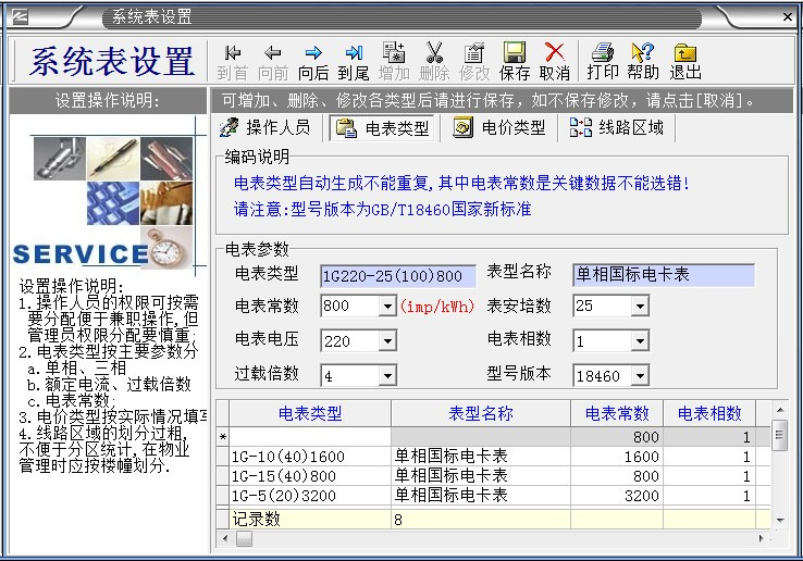 1、“電表類型”,鼠標左鍵:選擇你需要的“電表類型”