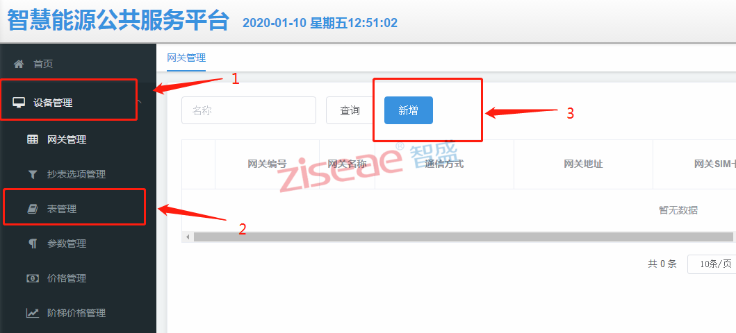 點擊設備管理,再點擊表管理