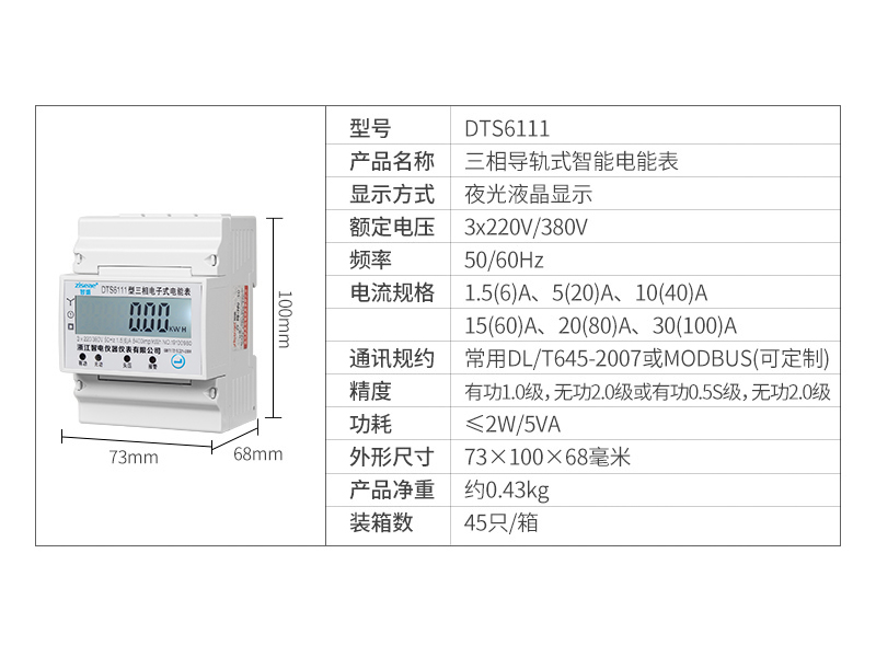 DTSD6111、DSSD6111型三相導軌式智能多功能電能表(4P)