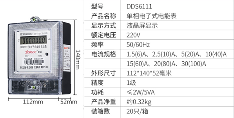 DDS6111型單相電子式電能表,由于采用集成電路和SMT制造工藝,使之測量準(zhǔn)確度,穩(wěn)定性等均得到了可靠保證.適用計量額定頻率為50Hz,額定電壓為220V的單相交流有功電能.
