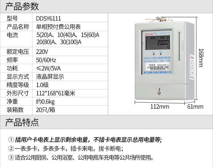 DDSY6111型電子式單相插卡預(yù)付費電表,采用集成電路設(shè)計,全自動表面貼裝(SMT)生產(chǎn)工藝制造。電能表的線路設(shè)計和元器件選擇以較大的環(huán)境允差為依據(jù),可保證整機(jī)穩(wěn)定工作,精度高、高過載、低功耗,可靠性能高。內(nèi)置磁保持繼電器。通過控制繼電器實現(xiàn)控制負(fù)載的通與斷,實現(xiàn)督促用戶先買電后用電的功能。