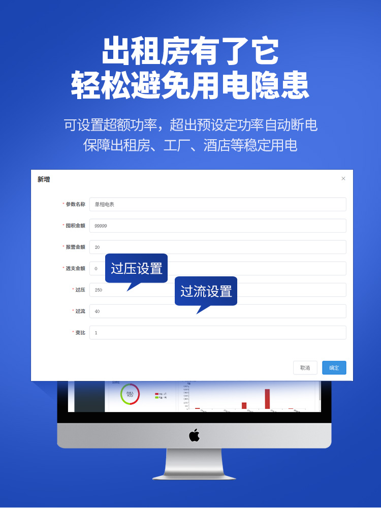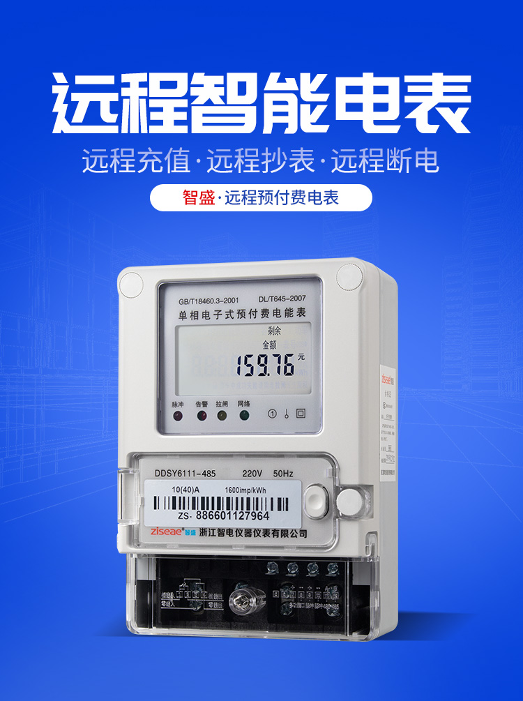 本公司DDSY6111/DDZY6111遠程智能電表與本公司遠程抄表系統和手機APP配套使用,遠程抄表管理系統具有實時抄表、定時抄表外,還提供了設備管理功能,如告警、余額短信通知、遠程充值、手機抄表、手機查詢、手機充值、預付費、后付費、自助充值機充值、遠程拉合閘、各種查詢報表、統計報表下載等功能。